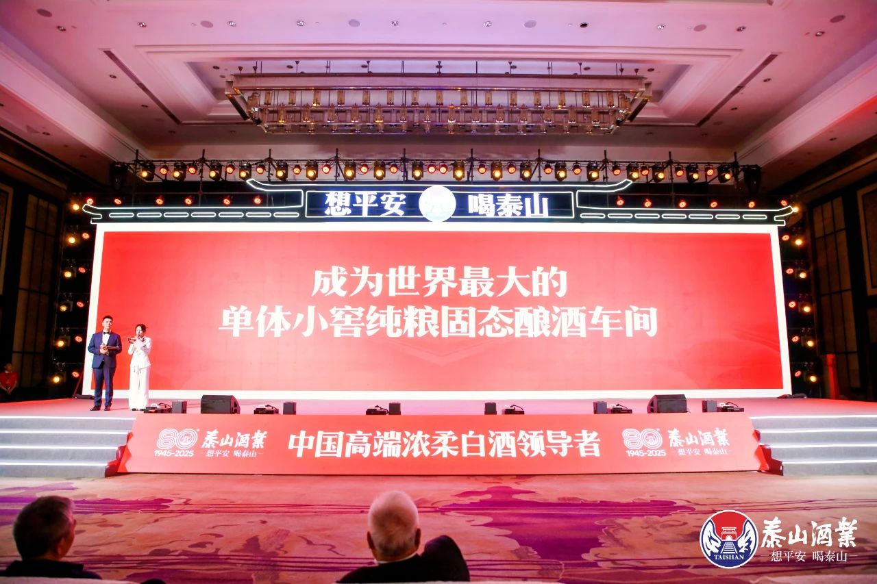 2025年5月9日,“穩(wěn)坐山東第一品牌,爭(zhēng)做中國(guó)小五糧液”泰山酒業(yè)全新品牌提升與高質(zhì)量發(fā)展大會(huì)暨泰山酒業(yè)八十周年慶典在山東泰安隆重舉行。會(huì)上,一場(chǎng)對(duì)泰山酒業(yè)三千座國(guó)寶金條小窖的震撼解說(shuō)引發(fā)行業(yè)熱議,首次披露了泰山酒業(yè)“五糧濃柔”風(fēng)味的品質(zhì)密碼,當(dāng)屏幕展現(xiàn)三千座國(guó)寶金條小窖,映照出的是泰酒人的匠心,展現(xiàn)的是泰山酒業(yè)“穩(wěn)做山東第一品牌,爭(zhēng)做中國(guó)小五糧液”的使命。