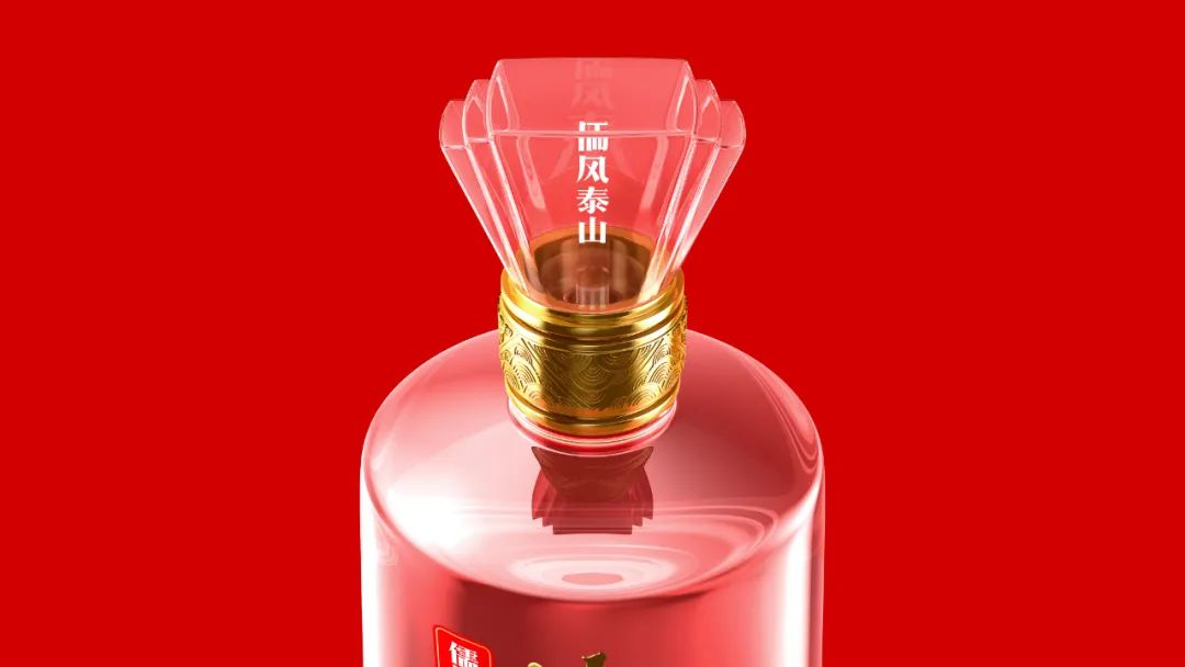 瓶蓋設計獨樹一幟,靈感源自古代儒生冠帽,集中體現(xiàn)了酒品所蘊含的儒家風骨。透明水晶玻璃材質(zhì)輔以鉆石質(zhì)感切割,圓潤通透,傳遞出儒雅特性。瓶頸處以金色金屬點綴,提升啟封時的尊貴儀式感;其花紋借鑒中國傳統(tǒng)水紋進行壓花設計,既寓意泰山酒“三千座國寶金條小窖,億萬年泰山泉水釀造”的生生不息與匠心傳承,又因水紋象征吉祥平安,彰顯了泰山酒瓊漿玉液的高端品質(zhì)與“國人平安酒”的深切祝福。